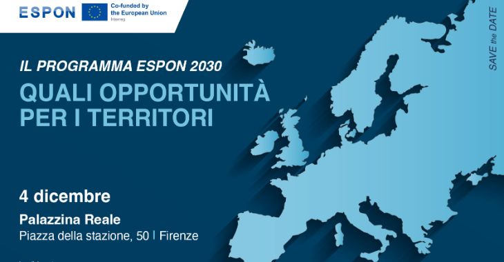 Si terrà mercoledì 4 dicembre a Firenze, l'evento "IL PROGRAMMA ESPON 2030 QUALI OPPORTUNITÀ PER I TERRITORI", con l'obiettivo di diffondere le opportunità che il programma ESPON 2030 offre ai territori. L'incontro sarà l'occasione per evidenziare come i risultati delle ricerche del programma Espon abbiano impatti positivi per i territori, attraverso il supporto agli amministratori con dati utili a elaborare le soluzioni più efficienti ed efficaci per affrontare le sfide future.
